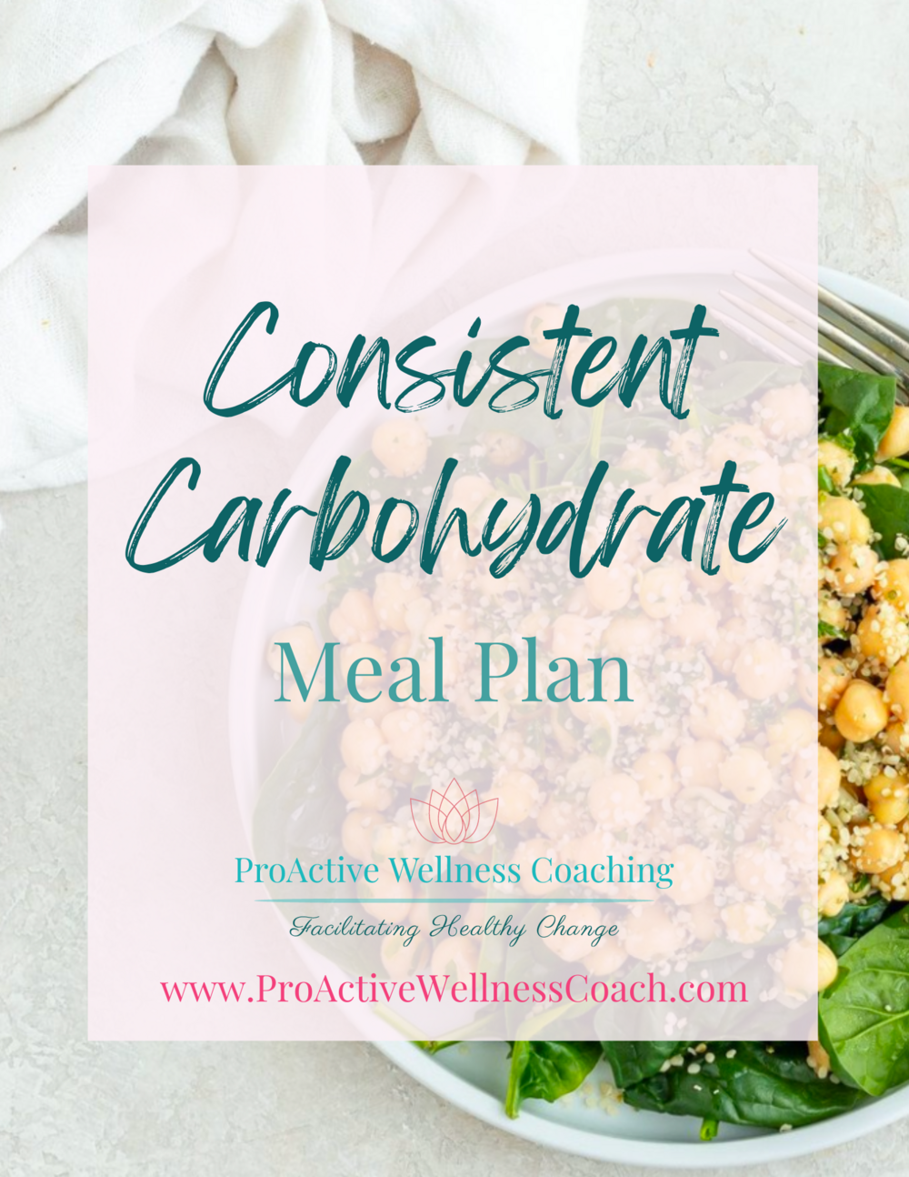 Balanced blood sugar benefits everyone! A consistent (or controlled) carbohydrate diet can help ANYONE, especially helps those with PCOS, Insulin resistance, or diabetes keep their carbohydrate consumption at a steady level, through every meal and snack. This plan is free from added sugar and uses high fiber, low glycemic carbohydrate sources. To reduce the risk of cardiovascular disease saturated fat and sodium are kept to a minimum.